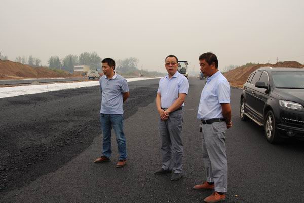 9月22日上午,公司總經(jīng)理孔德穩(wěn)在工程部、辦公室等人員的陪同下,驅(qū)車分別來到信陽職業(yè)技術(shù)學(xué)院、羊山新區(qū)工業(yè)大道,檢查指導(dǎo)路面施工情況。在職業(yè)技術(shù)學(xué)院,孔總與項(xiàng)目部人員詳細(xì)了解三個(gè)標(biāo)段的施工進(jìn)展情況,目前存在的困難和問題。當(dāng)項(xiàng)目部陳志明經(jīng)理介紹到二、三標(biāo)路段水泥穩(wěn)定碎石已做完,現(xiàn)正抓緊進(jìn)行涵管鋪設(shè),后面進(jìn)入三標(biāo)人行道建設(shè)時(shí),孔總對(duì)項(xiàng)目部的工作給予肯定。隨后,孔總一行又來到羊山新區(qū)家居產(chǎn)業(yè)小鎮(zhèn)工業(yè)大道,檢查瀝青路面施工情況。油面分公司漆昌輝經(jīng)理、王有志經(jīng)理分別向孔總介紹了近期工業(yè)大道油面鋪設(shè)進(jìn)度,并表示在天氣陰雨不斷的情況下,油面分公司組織廣大員工起早貪黑,加班加點(diǎn),不怕疲勞,連續(xù)作戰(zhàn),搶天氣、抓進(jìn)度,力爭(zhēng)在中秋節(jié)前完工??卓倢?duì)油面分公司這種敢打敢拼的精神給予高度贊揚(yáng)。圖為孔總分別在職院、工業(yè)大道項(xiàng)目工地檢查時(shí)的情景。